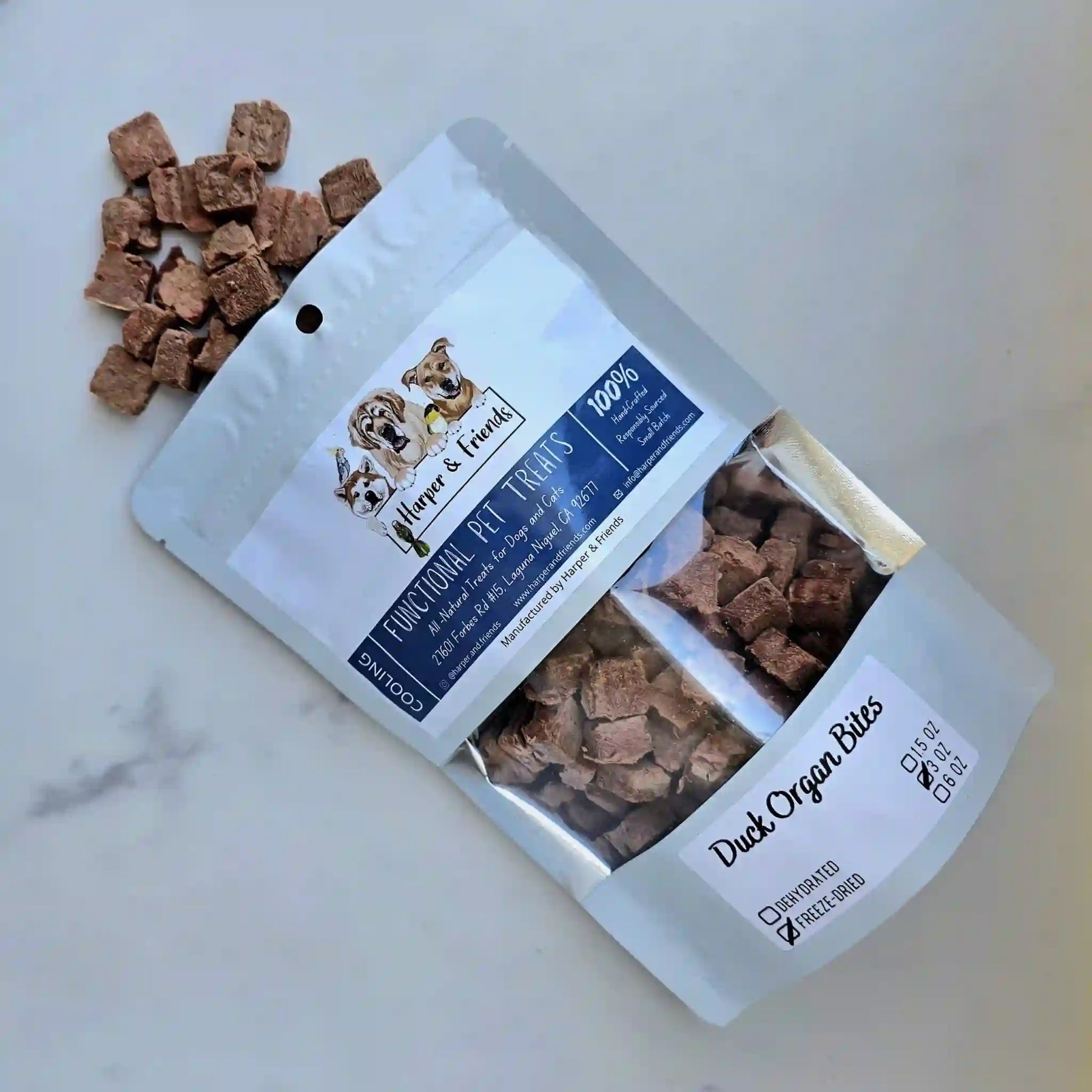 Our Freeze-Dried Duck Organ Bites are a fantastic alternative to all-too-common freeze-dried beef liver dog treats. An amazing way to show your pup love without all the excessive copper and pre-formed vitamin A found in beef liver.